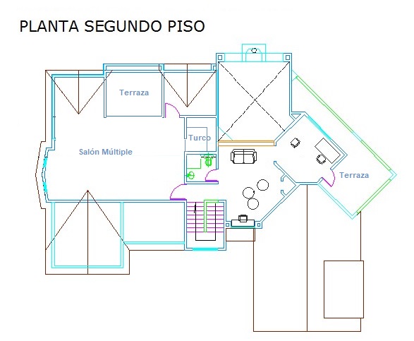 Una alcoba adicional con su baño completo, amplio salón múltiple y de de juegos con baño turco, dos (2) terrazas descubiertas, biblioteca con chimenea, cuarto de desván.